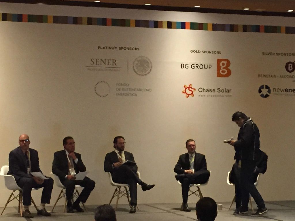 Participando en el panel sobre la competencia de las energías renovables en México junto con: Carlos Ortíz Gómez (Director general de información y estudios de energía en la SENER),Adrían Escofet (Presidente de la AMDEE), Alejo López (Gerente en México de Q CELLS) y Chris McCormick (Director de estrategia y finanzas de proyectos para Reykjavik Geothermal)